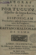 GAMA, C. M. de. Regras da lingua Portugueza, Espelho da lingua Latina, Ou disposiçam Para facilitar o ensino da lingua Latina pelas regras da Portugueza. 1. ed. Lisboa: Officina de Mathias Pereyra da Sylva & Joaõ Antunes Pedrozo, 1721.