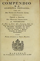 DUARTE, A. da C. Compendio da grammatica portugueza, para uso Das Escolas de Primeiras Letras, ordenado Segundo a Doutrina Dos Melhores Grammaticos e offerecido Ao Ilmº. e Exmº. Sñr. Candido Joze de Araujo Vianna, Presidente da Provincia do Maranhão, Deputado nas Côrtes Legislativas, Cavalleiro da Ordem de Christo, e Desembargador da Relaçaõ de Pernambuco. 1. ed. Maranhão: Typographia Nacional, 1829.
